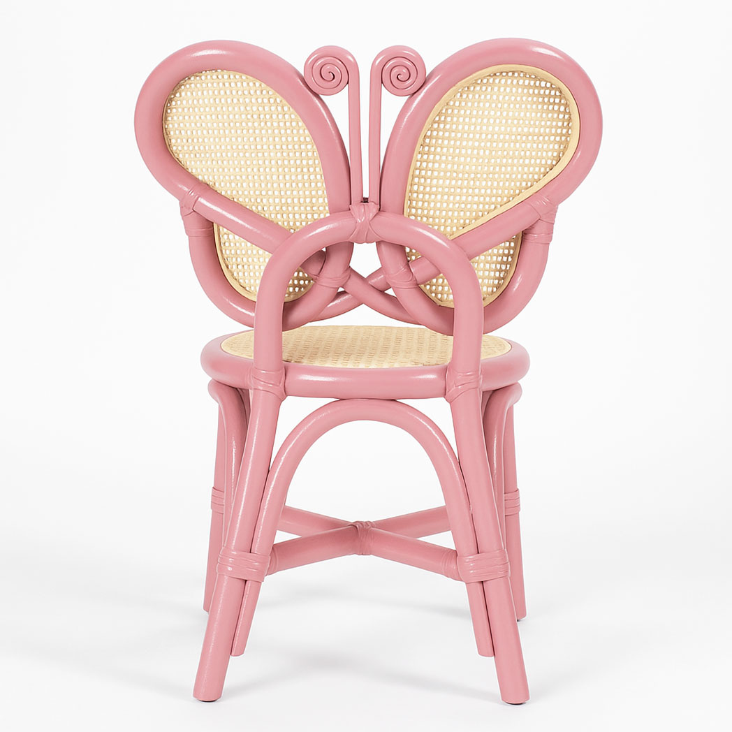 Add color and charm to any kids’ space with the Butterfly Back Kids Rattan Chair. Featuring a pink rattan frame, natural woven seat, and stackable design, this handmade chair combines durability, elegance, and fun. Perfect for playrooms, nurseries, and children’s events.