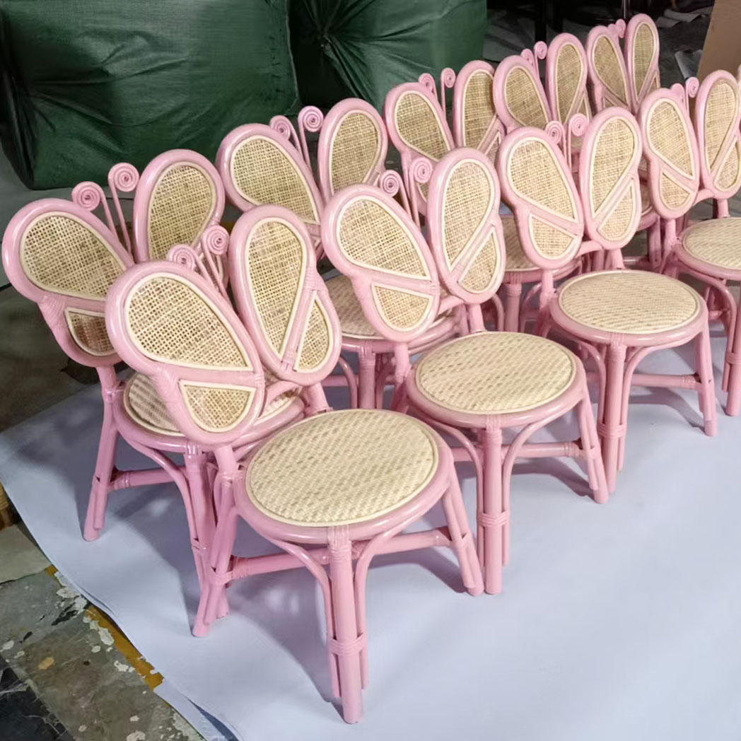 Every Butterfly Back Kids Rattan Chair is handmade in Foshan, Guangdong, China — a region recognized worldwide for its premium hospitality and event furniture craftsmanship. Each piece is individually finished to international export standards, ensuring durability, safety, and consistent quality for wholesalers, retailers, and event planners.