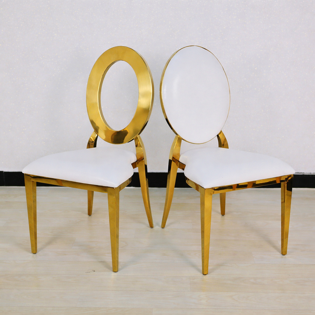 Elevate any wedding or event setting with this premium 2-in-1 oval-back stacking chair, crafted with a mirror gold stainless steel frame and smooth white PU leather upholstery. Designed for luxury venues, this commercial-grade chair combines elegance, durability, and efficient stackability—ideal for wedding halls, hotels, and event rental companies.
